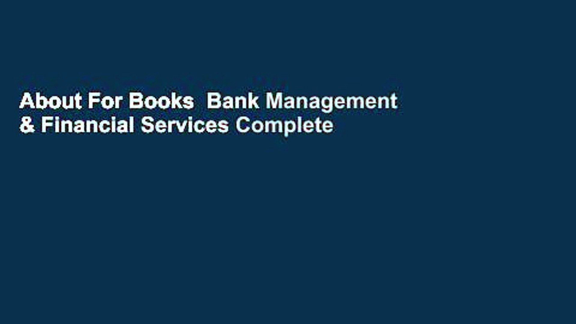About For Books Bank Management Financial Services Complete