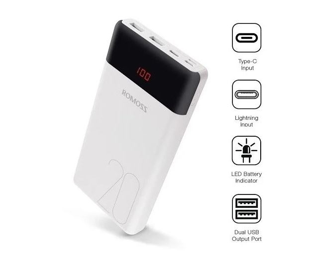 Romoss Sense 6p 20 000mah Aesthetic Design Dual Output Led Display